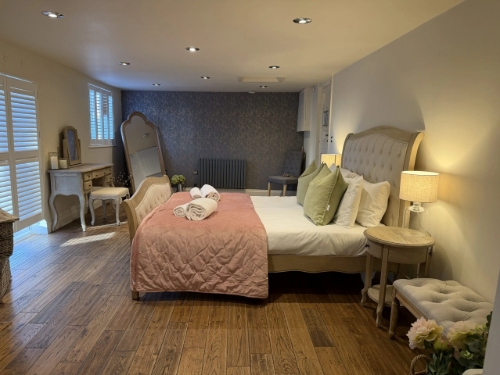 The Manor House accommodates up to 10 guests across four double bedrooms and one twin room, each with its own en-suite and stunning views of the surrounding countryside. Enjoy exclusive use of the beautifully appointed kitchen, lounge, dining room, and dressing room throughout your stay.