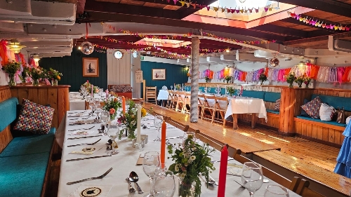 Built in 1906 as an Edwardian cargo vessel, Hydrogen has been beautifully converted to provide a really memorable and unusual venue for couples looking for something a bit different. Choose to include a "Two Island" cruise as part of your day for up to 50 guests, perhaps inviting more guests for an evening party on the Quay.